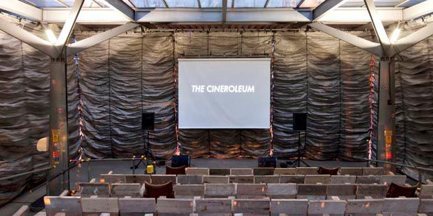 Wykorzystując podarowane lub odzyskane materiały, grupa młodych artystów, projektantów i architektów zbudowała The Cineroleum, aby umożliwić przekształcenie porzuconych lub niewykorzystanych przestrzeni miejskich oraz jako „improwizację na temat schyłkowych wnętrz, które witały widzów podczas złotego wieku kina”. Popcorn, papierowe bilety, wymyślne oznaczenia i składane fotele pomogły odtworzyć ekscytację związaną z pójściem do kina.